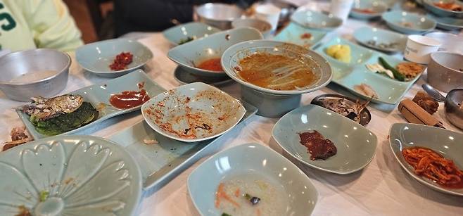먹으면서 설거지 했다. 싹 비움. 상다리 휘어진다는 남도상차림은 아니었지만 부족함도 모자람도 없이 꽉 차게 잘 먹은 느낌이다. 강진 병영성 관광 오시면 무조권 연탄돼지불고기 먹고 돼지되기.