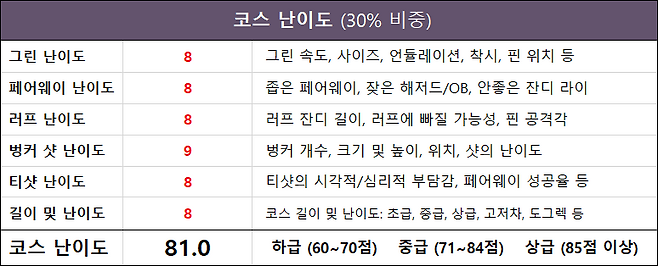 효율적인 공략을 할수록 더 많은 재미와 가치를 느낄 수 있는 골프장으로 만족도가 높습니다. 작년, 재작년에 비해 그린피가 좀 많이 오른 게 아쉽지만 말이죠.