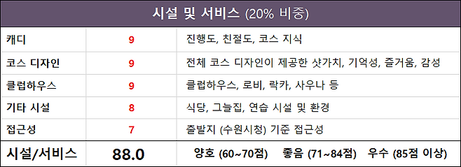 ▶ 캐디의 코스 설명, 운영 및 친절도 : 9 점