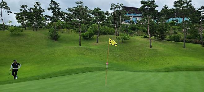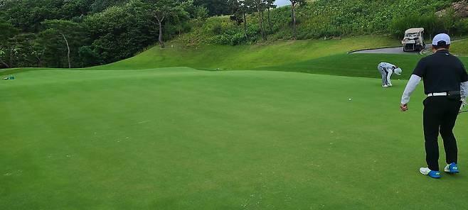 그린이 상당히 큰 편인데도 느리니 퍼팅 거리 가늠하기가 쉽지 않았네요.