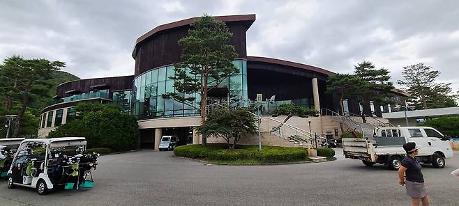 큼직한 연습 그린으로 나가는 클럽 뒤편 스타트 광장