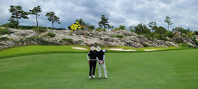 힐 코스 마지막 파 5 홀 그린 주변의 멋진 바위 풍경.