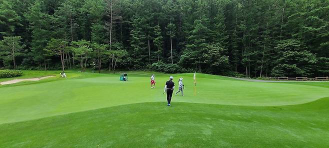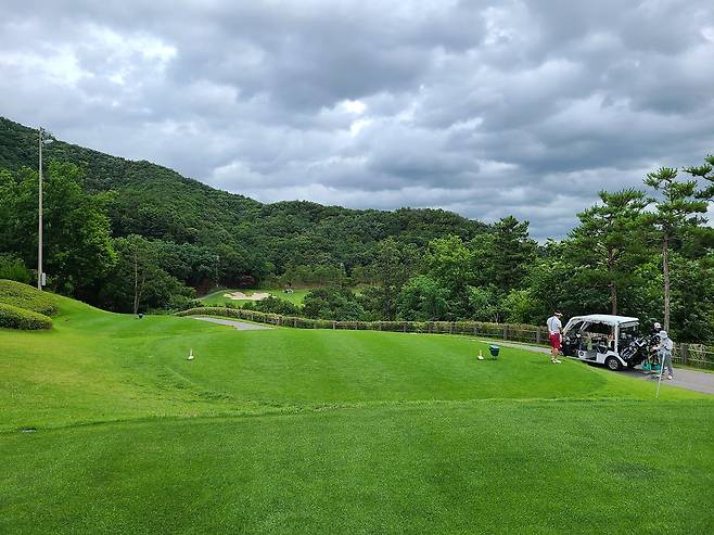 캐디분은 상냥하고 코스 설명 적당히 아시는 분으로 순조로웠습니다. 우리 조 모두 저 빼고 잘 친다는 것을 알아차리시고 프로답게(?) 라이를 보지 않고 공을 놓으시네요 ㅎㅎㅎ