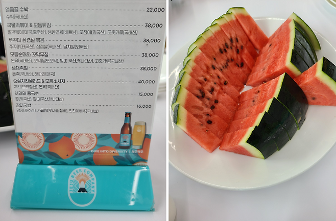이날 먹은 수박 맛과 양에 비해 가격도 좋았습니다. 타 코스에서 8조각이 3~4만 원 선인데 여기 2.2만 원 가격에 약간 의아했습니다.
