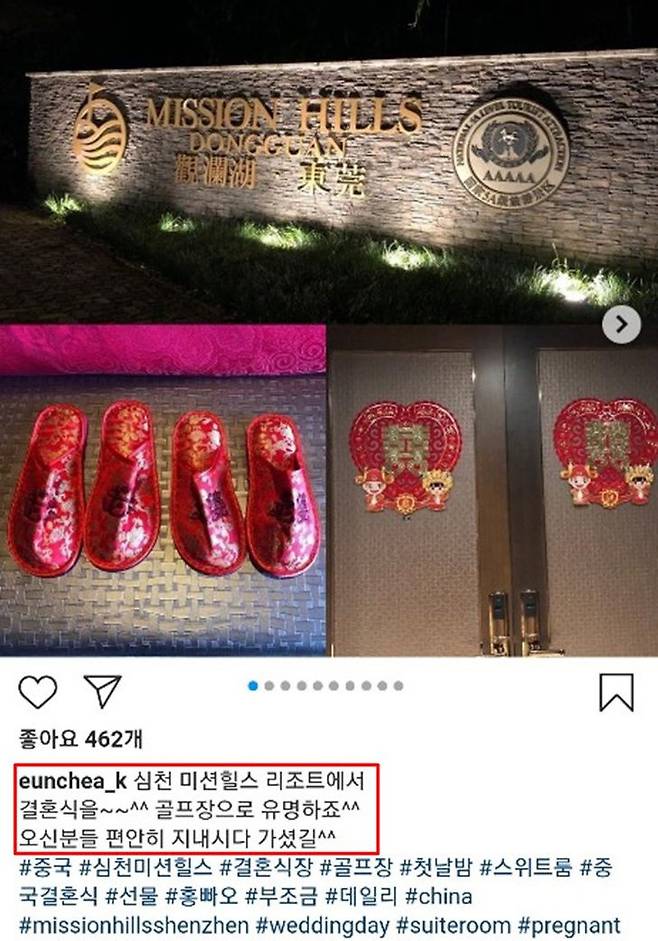 특히 2018년 12월 중국 심천에서 진행된 첫 번째 결혼식은 하객과 규모가 모두 상상 그 이상이었습니다. 성은채의 결혼식이 진행된 미션힐스 리조트는 세계 최대 골프코스로 기네스북에 등재되었고 각종 부대시설까지 워낙 잘 꾸며져 있어 '세계에서 가장 영향력 있는 골프장 10'에 든 곳입니다.