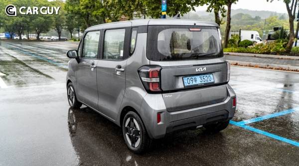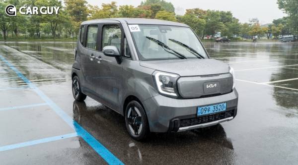 비가 내리던 날 만난 레이 EV는 외장에서 큰 차이점을 발견하기는 어렵다. 새로운 휠 디자인과 그릴 중앙의 충전 포트가 거의 유일한 전기 모델을 구분하는 포인트다. 주행거리를 확보하기 위해 14인치 스틸 휠과 알로이 휠 두 종류만 선택이 가능하다.