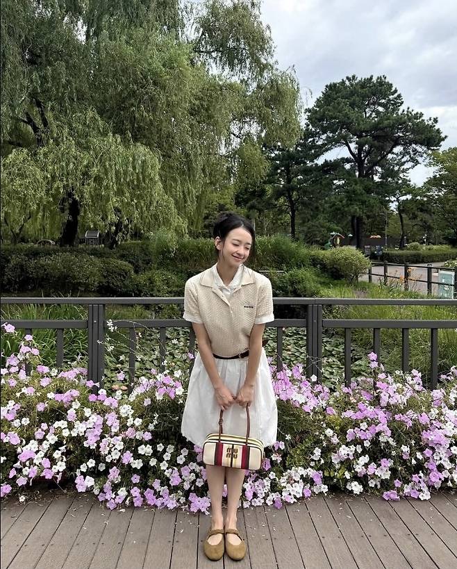 특히 군더더기 없는 내추럴 메이크업과 내린 머리 스타일로 특유의 단정미를 배가시켰고, 브라운 플랫 슈즈로 편안함까지 잡아 완벽한 나들이룩을 완성했습니다.