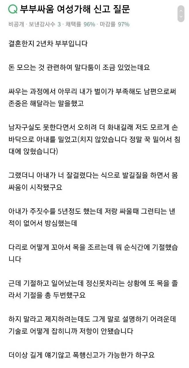 주짓수 5년 한 아내한테 2번 기절했다고 함