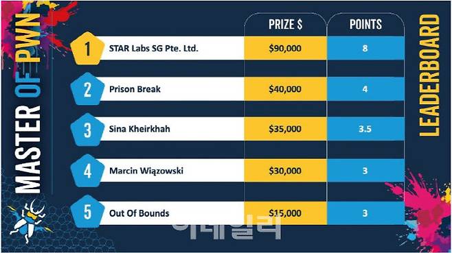 [이데일리 김태형 기자] 한국정보기술연구원 (KITRI)에서 운영하는 “차세대 보안리더 양성 프로그램(Best of the Best, 이하 BoB)” 13기 취약점분석 트랙 수료생으로 이루어진 “Prison Break”팀이 독일 베를린에서 열린 국제 해킹대회 폰투온(Pwn2Own)에서 오라클(Oracle)사의 Virtual Box 제품의 보안 취약점을 통한 해킹에 성공하여 4만 달러(약 5,600만원)의 상금을 획득했다.