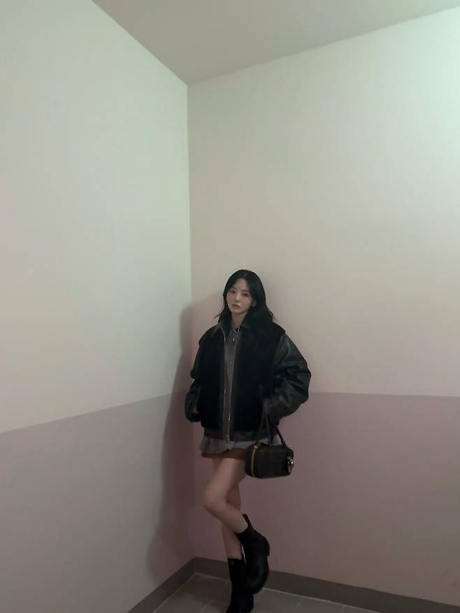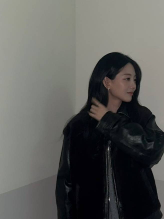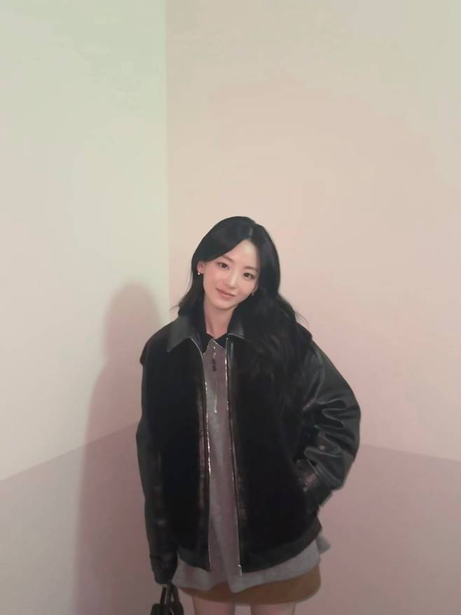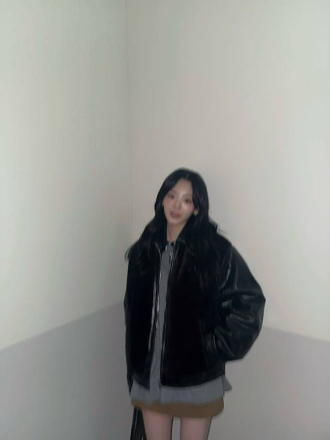 사진 속 조이현은 광택감이 돋보이는 블랙 가죽 무스탕 자켓을 착용해 강렬하면서도 세련된 무드를 연출했는데요.