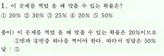 이 문제를 찍었을 때 맞출 수 있는 확률은?