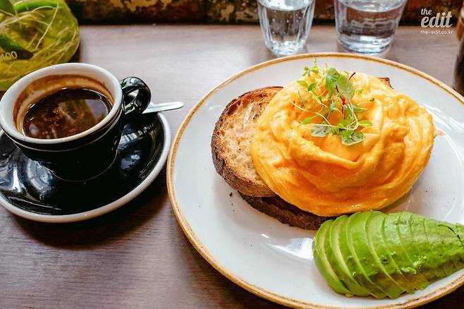 세븐시즈에서 호주식 아메리카노인 롱블랙을 마셨다. 호주에서는 에스프레소를 숏블랙, 아메리카노를 롱블랙이라 부른다. 세븐시즈의 롱블랙은 더블샷 에스프레소를 기본으로 커피의 질감이 명확하고 향미가 과하지 않고 또렷하다. 조식 메뉴는 아보카도와 스크램블 에그. 프라우드 메리의 음식과 커피가 맹렬한 완성도를 과시한다면, 세븐시즈의 음식은 커피와의 궁합이 편안하고 자연스러웠다. 화려하지 않지만, 오래 머물수록 신뢰가 쌓이는 느낌이었다. 멜버른 커피의 학구적인 온도가 가장 잘 드러나는 매장이다.