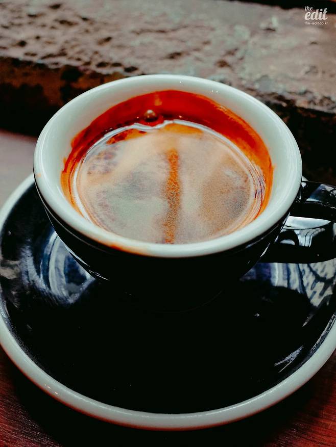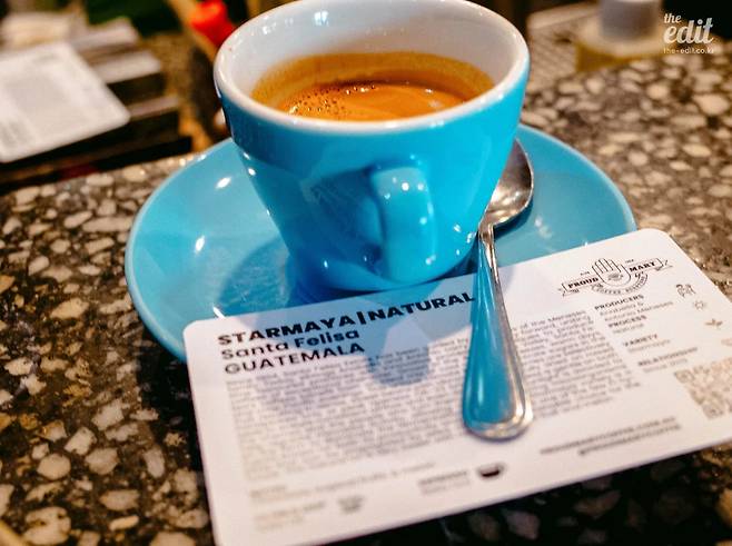 커피 메뉴는 기본 에스프레소와 밀크 베리에이션을 중심으로, 다양한 싱글 오리진과 창작 음료까지 폭넓게 구성되어 있다. 세인트 알리의 추천 메뉴는 에스프레소 플라이트. 블렌딩 1종과 싱글 오리진 2종, 총 세 잔의 에스프레소를 비교하며 마실 수 있는 메뉴이다. 기본 블렌딩은 이탈리아식 에스프레소를 연상시키는 진득한 질감과 단맛이 인상적이고, 싱글 오리진 에스프레소는 보다 선명한 산미와 향미가 대비를 이룬다.