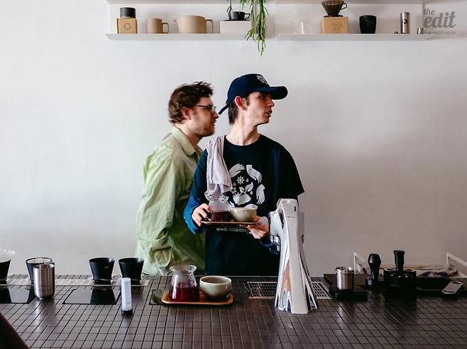 멜버른 대학가 주변에 위치한 세븐시즈는 멜버른에서 가장 차분한 스페셜티커피 매장이다. 프라우드 메리와 세인트 알리가 각자의 방식으로 에너지를 발산한다면, 세븐시즈는 조용히 집중하는 쪽에 가깝다. 매장에 들어서면 자연스럽게 목소리가 낮아지고, 커피를 기다리는 동안 책을 펼치거나 노트북을 여는 손님들이 눈에 띈다. 대학가 특유의 학구적인 공기가 가득했다.