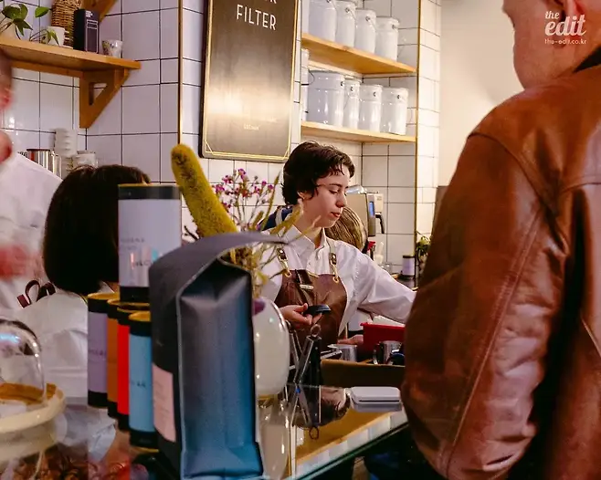 세인트 알리의 외부는 상대적으로 조용했다. 하지만 내부는 테이크아웃 바와 홀 좌석이 분리된 넓은 공간에 올데이 브런치와 커피를 즐기는 손님들로 하루 종일 활기가 넘친다. 원조 매장답게 다양한 굿즈와 커피 관련 제품들도 함께 진열되어 있어, 단순한 카페가 아니라 하나의 커피 플랫폼처럼 느껴졌다.