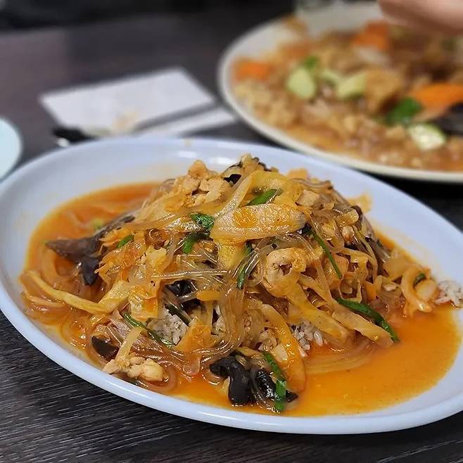 1984년 용산에서 시작하여 2019년 둔촌동으로 자리를 옮긴 ‘바른중식당 국보성’. 아버지의 뒤를 이어 아들이 2대째 웍을 잡아오고 있다. 소스를 포함하여 모든 음식은 주문과 동시에 만들기 시작한다. 대표 메뉴 ‘잡채밥’은 볶음밥 위로 물기 없이 볶은 잡채를 넉넉하게 올려 제공한다. 밥알이 흩날릴 정도로 고슬고슬한 볶음밥에 탱글탱글한 당면이 어우러지며 다채로운 식감을 더한다. 당근, 부추, 양파, 고기 등 길쭉하게 채 썬 재료들이 당면과 함께 씹히며 입안 가득 풍성한 맛이 차오른다. 은은한 매콤함을 지닌 잡채가 삼삼한 볶음밥에 간을 더하며 조화롭게 어울린다.