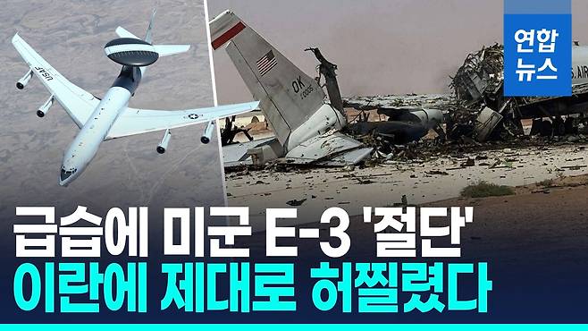 [영상] 미군 '하늘의 눈' E-3 첫 파괴…"꼬리 부분 완전 절단"