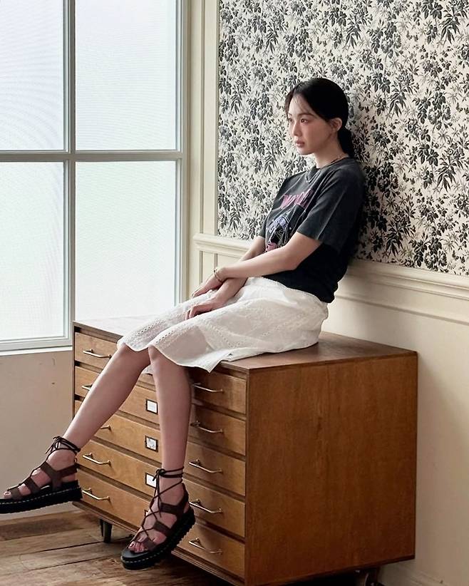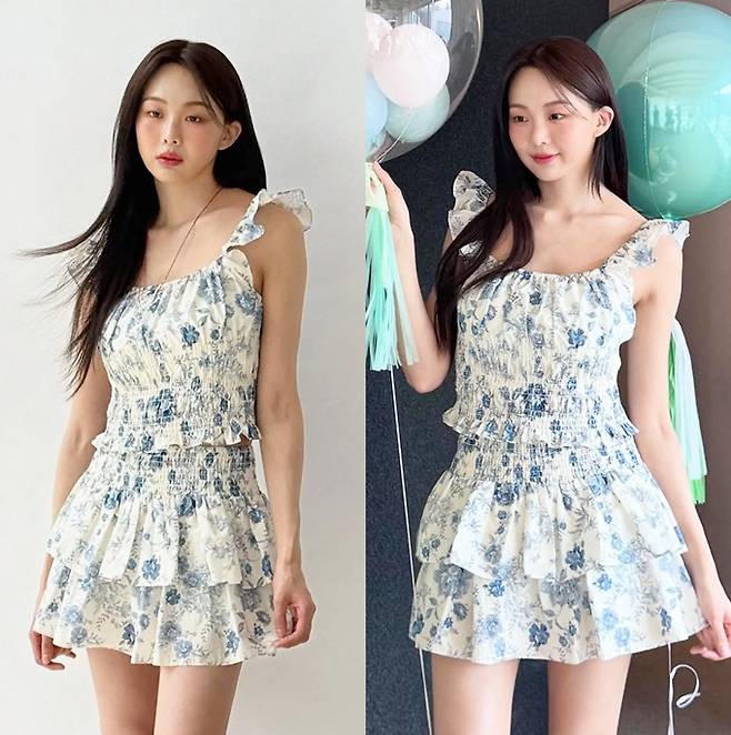 공개한 사진에서 금새록은 꽃무늬 러플 스커트와 민소매 크롭톱의 투피스와 핑크빛이 도는 꽃무늬 셔츠 원피스로 러블리하면서도 로맨틱한 봄 스타일을 선보였다.