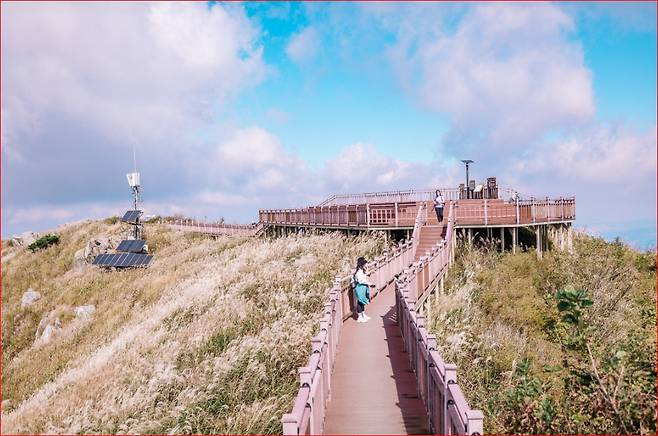 억새군락지 : 정상에 가까워질수록 억새가 바람에 일렁이며 은빛 파도를 이루고, 사진으로 다 담기지 않는 감동을 선사합니다.