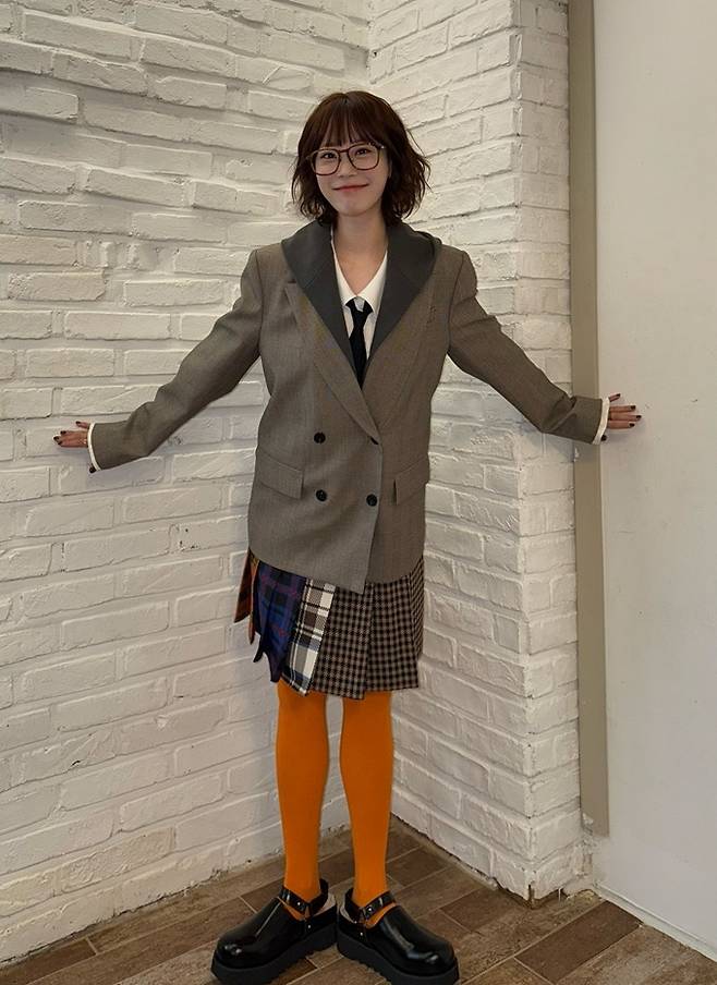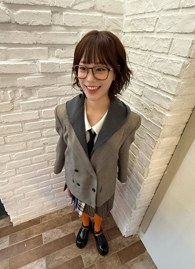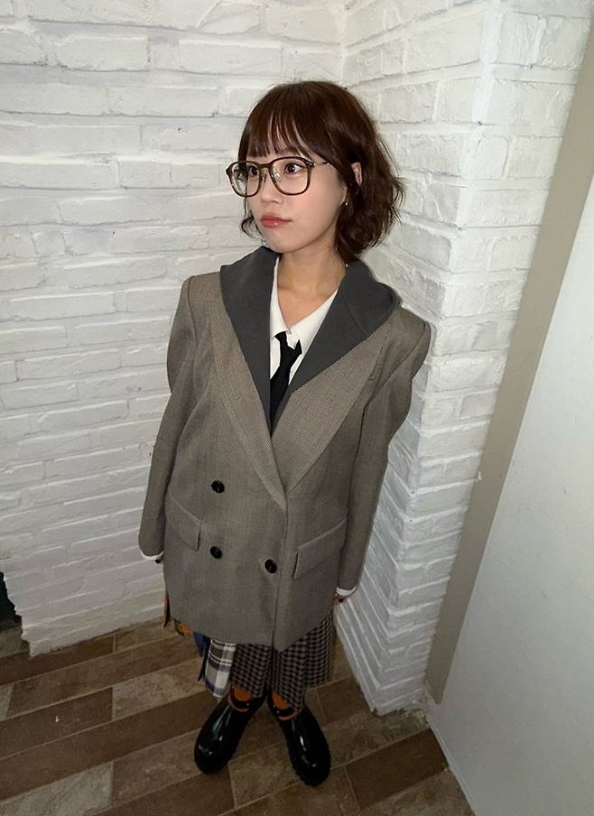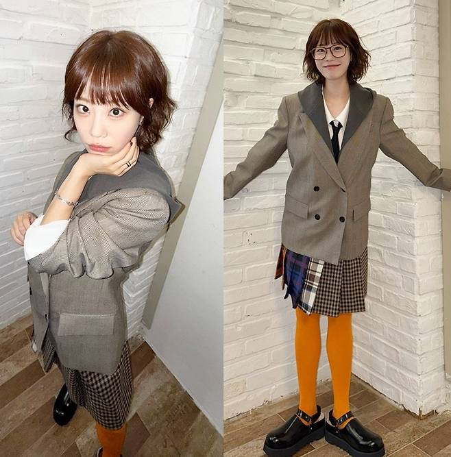 공개한 사진에서 허영지는 체크 플리츠 스커트와 화이트 셔츠에 타이를 매고 헐렁한 오버핏 재킷을 매치한 프레피룩으로 큐티하면서도 발랄한 스타일을 선보였다.