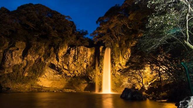 천지연폭포는 제주도의 대표적인 폭포 중 하나로, 낮에 방문할 때와는 또 다른 매력을 가지고 있습니다. 밤이 되면 폭포의 조명이 비추어져, 낮과는 또 다른 운치 있는 풍경을 만들어냅니다. 이 폭포는 22m 높이에서 떨어지는 웅장한 물줄기가 인상적이며, 밤에 보는 조명이 가미된 폭포는 특별한 경험을 제공합니다.