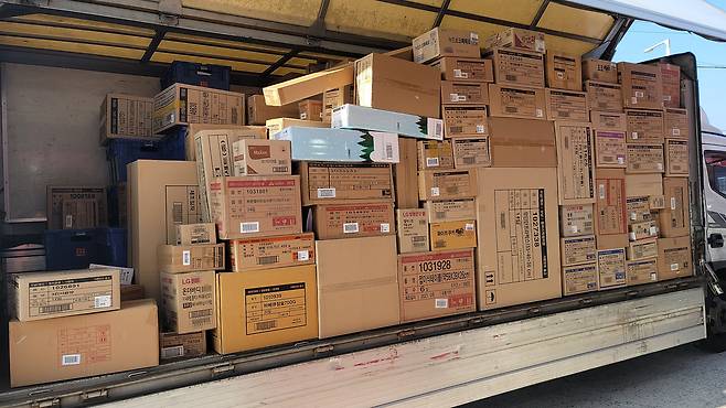 β λ°°μ‘ μ°¨λμ΄ λμ°©νλ©΄ λ¬Όνμ λ΄λ¦¬κ³ μ 리νλ μμ