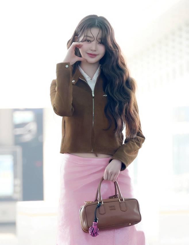 그룹 아이브(IVE)의 장원영이 앙증맞은 배꼽이 살짝 드러난 핑크 스커트의 출국룩으로 러블리한 미모를 발산했다.
