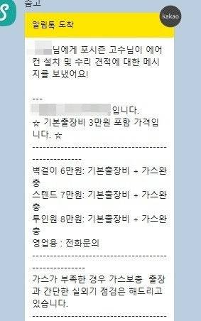 제가 견적 받은 업체는 출장비와 실외기 점검 비용이 포함된 금액이었습니다.