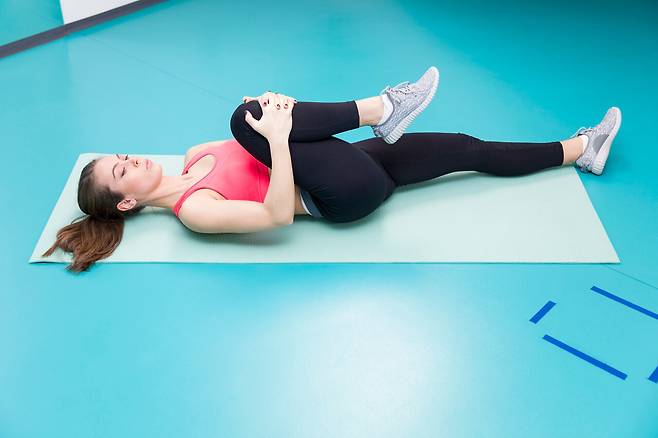 2. 한쪽 무릎을 가슴 쪽으로 당긴 채로 15~30초간 유지