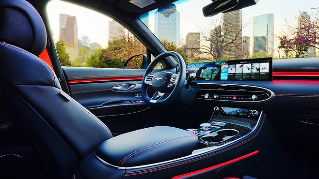 신형 GV70은 제네시스의 최신 디자인 언어가 반영된 MLA 타입 LED 헤드램프, 27인치 일체형 OLED 와이드 디스플레이, 전방 충돌 방지 보조(FCA) 등 최신 사양이 대거 적용됐다.
