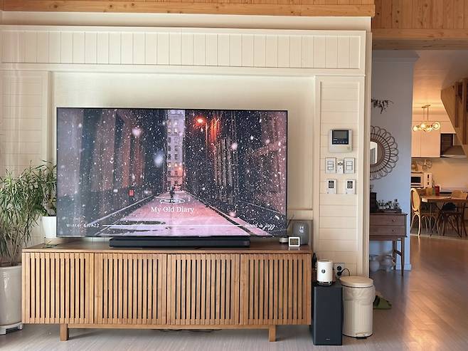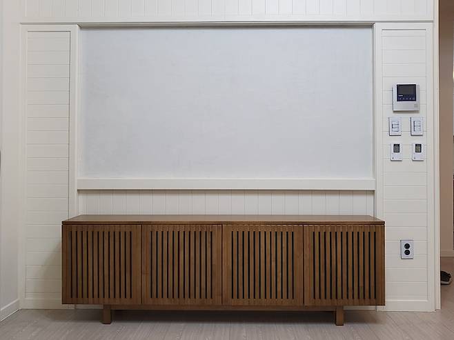 TV는 거거익선이라고 하잖아요. 처음 구매 전에는 65인치를 사려고 했는데 마음을 바꿔 75인치를 사게 됐어요. 막상 두고 나니 75인치가 딱 적당하더라고요. 또 그에 맞는 TV 장을 구매하려고 했는데, 저희 집에 필요한 TV 장의 요건은 이 세 가지였습니다.