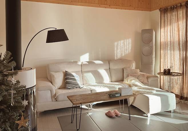 크림색의 소파와 블랙의 활 장스탠드의 조합이 어떠신가요? 크림, 우드, 블랙의 조합은 정말 언제나 멋진 거 같아요. 내추럴한 분위기의 거실에 포인트로 블랙 활 장스탠드를 두었더니 인테리어적으로도 더 완벽해지는 것 같습니다.