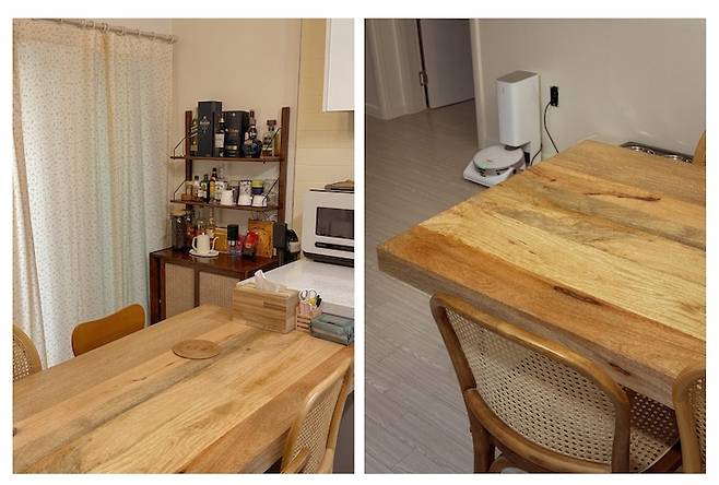 집에 방문하는 손님마다 식탁이 정말 예쁘다는 칭찬을 많이 해줍니다. 식탁을 보고 인테리어에 관심이 생겼다는 친구도 있었어요. 평범하게 볼 수 있는 식탁이 아니어서 더 그랬던 거 같아요.