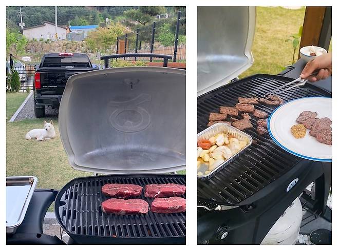전원주택에 살면 꼭 갖고 싶었던 것 중 하나가 바비큐 그릴이었습니다. 그렇지만 항상 숯을 태워서 고기를 굽는 것이 번거로울 거 같아서 가스 그릴을 구매했는데, 준비나 청소의 과정이 더 짧아서 편해요.