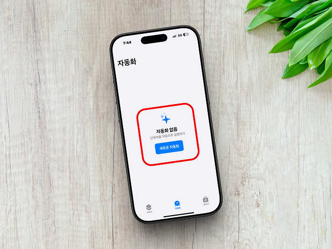 아이폰에서 '단축어' 앱을 열고 화면 하단의 '자동화' 메뉴를 누릅니다.