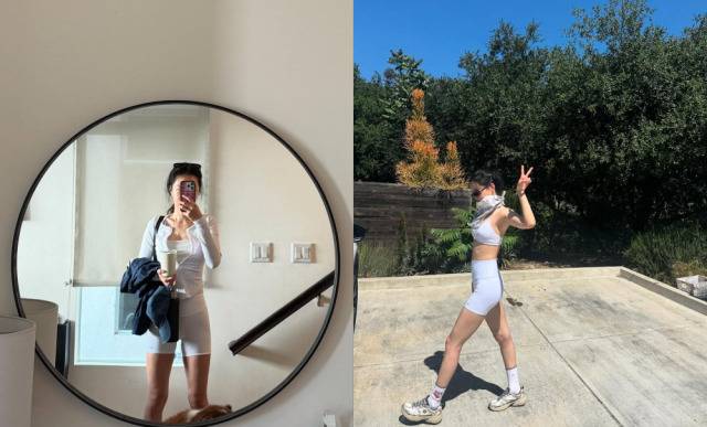 무엇보다 눈길을 끈 것은 손나은의 '레깅스 핏'이다. 평소에도 '레깅스 여신' 별명을 보유한 그는 이번에도 기대를 저버리지 않았다. 흰색 크롭티에 숏 레깅스를 매치해 스포티룩을 완성한 손나은은 군살 없는 슬림한 몸매 라인을 그대로 드러내며 독보적인 핏을 자랑했다.