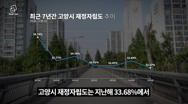 부동산 침체는 고양시의 재정에도 큰 타격을 주고 있습니다. 재산세 수입 감소로 인해 고양시의 재정자립도는 2023년 33.68%에서 2024년 32.27%로 하락했습니다.
