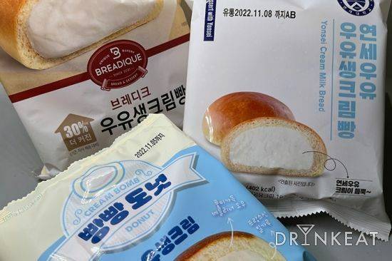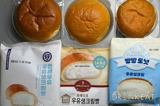 남녀노소 불문하고 사랑받는 크림빵의 인기는 CU 편의점의 연세우유 크림빵으로 새로운 역사를 썼다고 해도 과언이 아니다. 동네 빵집에서 사 먹던 길쭉한 모양의 크림빵도 아니고, 마트 매대에 있던 빵도 아니다. 디저트 공간에 고스란히 자리 잡고 있으며, 냉장 보관되고 있는 크림빵. 품절 대란이 일어나고, 유튜브 및 SNS에 수없이 등장하며 많은 사람의 관심을 받았다. 이에 타 편의점도 어김없이 비슷한 종류의 빵을 출시하기 시작했다. 드링킷의 기획 기사 시리즈인 [드링킷픽]의 주제로 이보다 더 좋은 것이 없다고 판단했다. CU 편의점의 연세우유 크림빵과 함께 GS25 브레디크, 이마트24의 빵빵도넛까지 총 3종의 차이점이 무엇인지 낱낱이 파헤쳐 보기로 했다. 초코, 딸기 등 다양한 맛이 있지만, 공통적이면서도 기본인 오리지널(우유)을 선택했다.