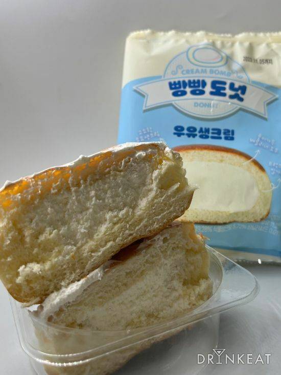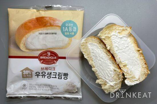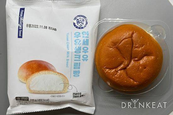 편의점 크림빵의 떠오른 샛별, CU의 연세우유를 가장 먼저 맛봤다. 드링킷에서도 연세우유 3종을 모아 따로 리뷰했을 정도로 엄청난 인기였던 크림빵. 크림은 묽지도 단단하지도 않은 딱 중간 정도의 질감이다. 우유의 풍미가 느껴지지만 맛이 강한 편은 아니다. 크림의 양에 비해 느끼하지 않다는 것은 장점이다. 냉장 보관임에도 빵 피가 쫄깃하다는 점이 굉장히 놀라웠다. 얼려 먹어도 빵의 쫄깃함은 유지할 수 있고, 아이스크림처럼 시원하게 즐기기에도 좋다. 다소 공산품 특유의 미약한 술빵 맛이 느껴진다는 의견도 있으니 참고하길 바란다.