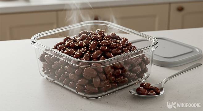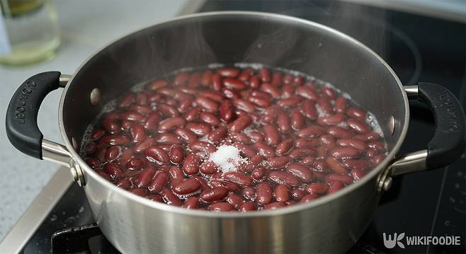 불린 강낭콩을 냄비에 담고 넉넉한 물을 부어 삶기 시작한다. 소금을 먼저 넣어 콩 특유의 비린 향을 없애주고, 콩이 부드러워질 때까지 중불에서 익혀준다. 이후 물을 자작하게 남긴 채 진간장, 설탕, 물엿, 참치액을 넣고 은근하게 졸여간다.