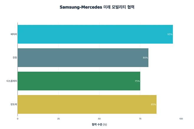 전장(차량용 전자장비) 분야도 이번 협력의 중요한 축이다. 현대 자동차에서 전장 기술은 단순한 부품이 아니라, 차량의 신경계를 담당하는 핵심 기술이다. 삼성의 전장 기술력이 벤츠의 차량에 광범위하게 통합된다면, 벤츠 자동차의 기술 신뢰성과 경쟁력이 한 단계 상승할 것이다.