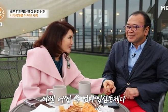 그는 "내가 더 보살펴주고 감싸줘야 할 나이인데, 거꾸로 당신이 나한테 그렇게 해주니까 만감이 교차된다"고 말했다. 이에 김민정은 "내가 당신이고, 당신이 나다. 이제는 어쩔 수 없이 일심동체"라며 남편을 향한 깊은 애정을 드러냈다.
