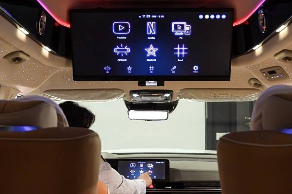 통합 제어 시스템의 중심에는 첨단 디스플레이 기술이 자리 잡고 있다. 운전석에는 파노라마 모니터가 장착되어 있으며, 2열 좌석 앞에는 29인치 디스플레이가 배치되었다. 더불어 실내 천장에는 55인치 대형 디스플레이가 설치되어 있어 승객 위치에 따라 최적화된 시청각 경험을 제공한다. 이 디스플레이들은 독립적으로 작동할 수 있어 사용자의 편의성을 더욱 높였다.