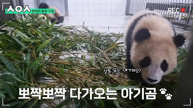 송영관 주키퍼도 아기 판다 다이어리에서 "후이는 두뇌 회전이 빠르고 감정 표현이 적극적이다"라고 언급한 적이 있어요. 궁금한 것은 반드시 알아야 하고, 다른 이에게 관심을 아낌없이 표현하는 후이바오의 모습이 그 말에 딱 들어맞네요.