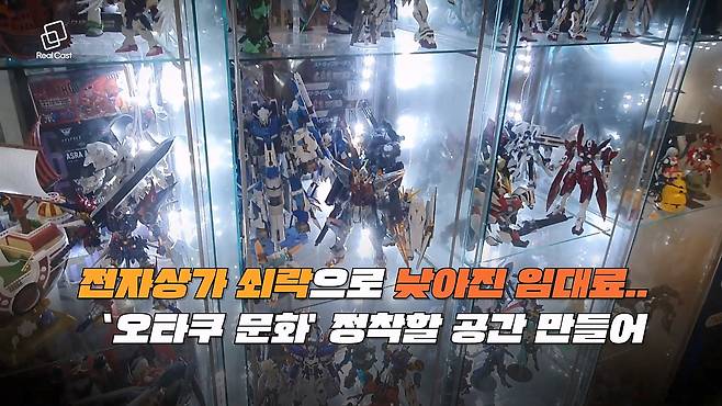 이런 게임의 영향력도 팬데믹 무렵해서 주춤하게 되는데 이 영향력의 빈 공간을 차지하기 시작한 게 애니메이션 피규어 및 굿즈 가게들입니다. 고객층이 일정 부분 겹치는 면도 있었고, 전자상가의 쇠락으로 낮아진 임대료가 오타쿠 문화가 정착할 공간을 만들어준겁니다.