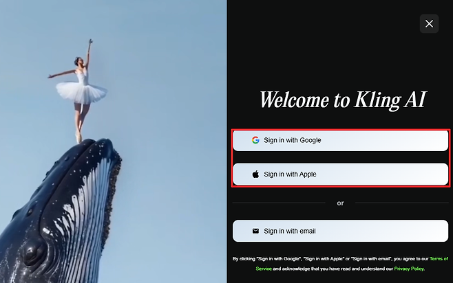 Kling AI 웹사이트에 접속하여 회원가입을 완료합니다.