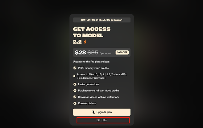로그인 후 팝업이 계속 나타날 경우 Skip offer를 클릭하여 넘어갑니다.
