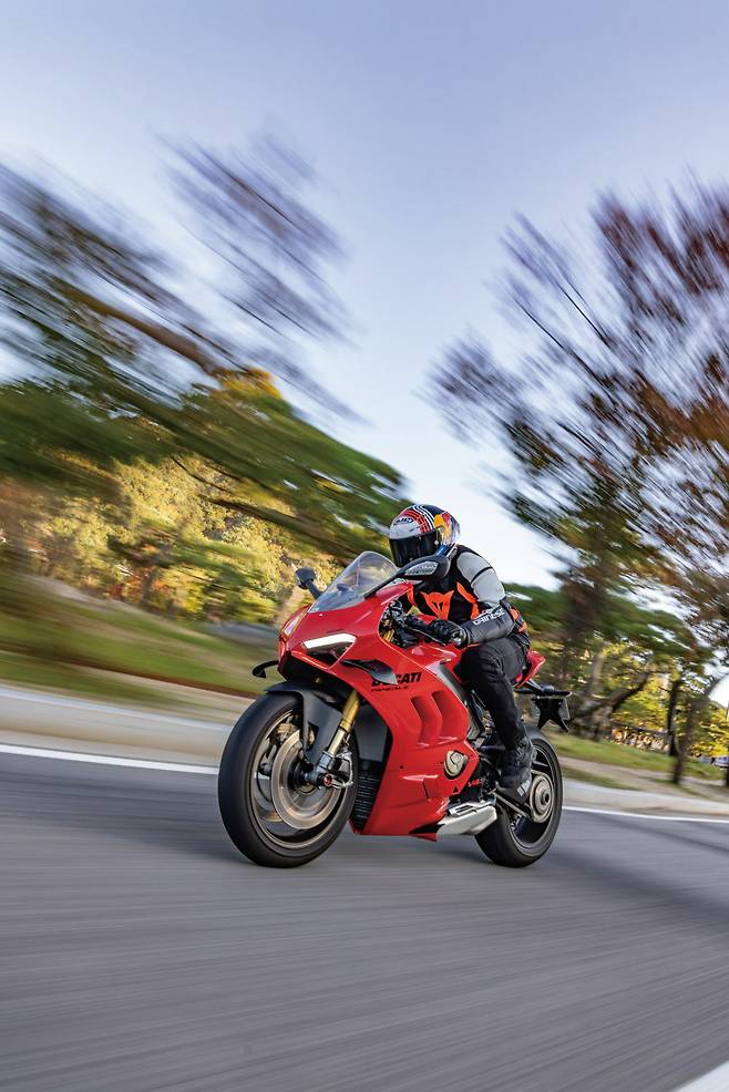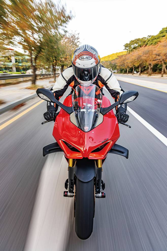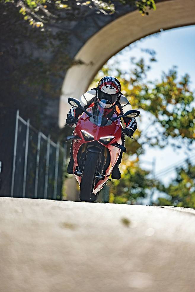 혹시나 길거리에서 파니갈레가 조금 빠르게 지나간다면 그 라이더가 꽤 힘들고 피곤한 상태일 수 있으니 이해해 줄 필요가 있겠다. 노면 온도가 꽤떨어져서 냉간 시에 피렐리 슈퍼코르사 타이어의 접지력이 부족하진 않을지 우려했는데 냉간 상태에서도 전자장비 덕분에 안정적이고 가감속 몇 번만으로도 열이 올라 이미 쫀득하게 아스팔트를 물고 달린다.
