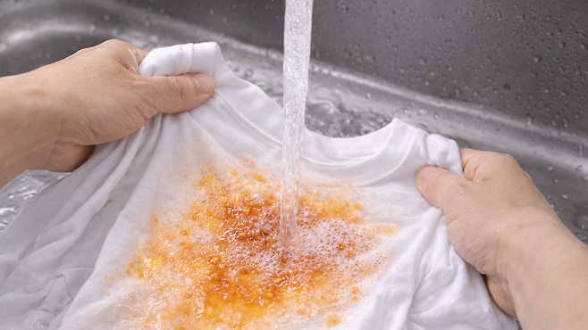얼룩을 빨리 없애겠다고 뜨거운 물부터 사용하는 것은 가장 흔한 실수다.