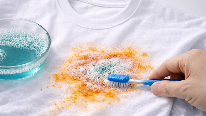 일반 세탁세제로는 기름기만 일부 제거되거나, 색소만 옅어질 뿐 얼룩이 남기 쉽다. 특히 시간이 지나 섬유에 스며들면 난이도는 더 높아진다.